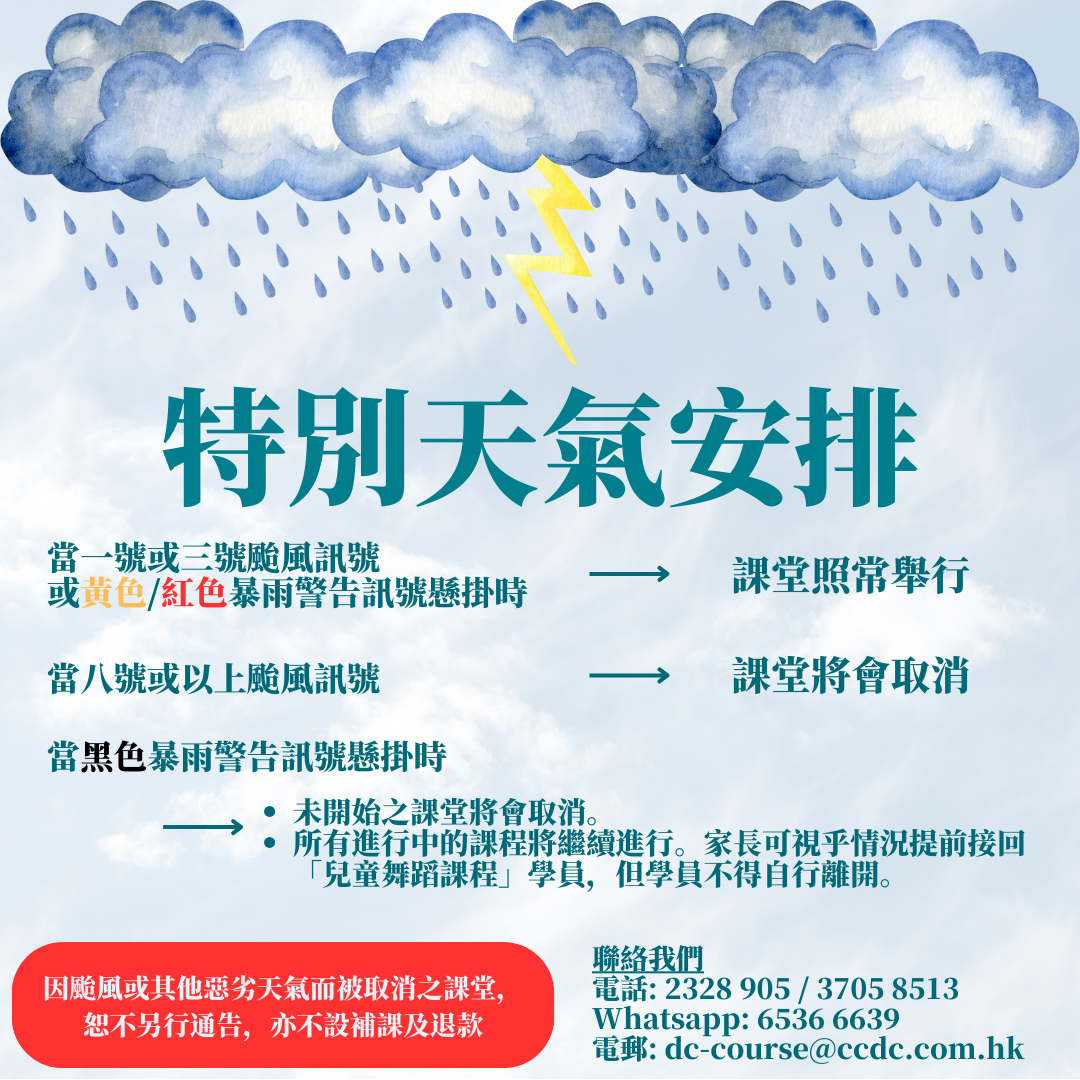 - 活動期間,中心可能會進行拍攝及錄影,參加者之影像或聲音或作為日後市場推廣及宣傳之用。如有爭議CCDC舞蹈中心保留最終之決定權。